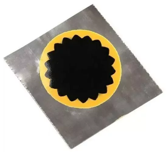 Caja de parches redondos para reparación de cámaras de vehículos.